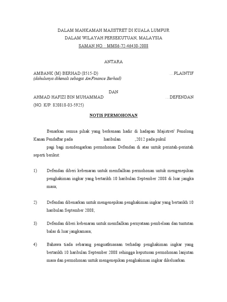 Notis Permohonan Dan Afidavit Sokongan Hafizi Final Mf Pdf